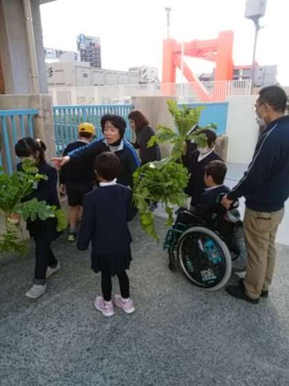 なかよしのみなさんが立派に成長したかぶを収穫しました。