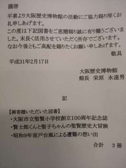 本校創立100周年記念誌が大阪歴史博物館に所蔵されることとなりました。公立小学校の記念冊子が保管されることは珍しいことです。
