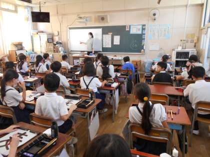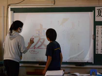 今日は、習字で「麦」を書きました。お手本を見て気づいたことを発表していました。一番初めに書いた各々の「麦」を比較して、気を付ける箇所を確認しながら練習に取り掛かっていました。