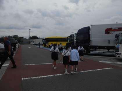 バスの中では、元気いっぱいで、おしゃべりで盛り上がっています。9時20分ごろ、桂川PAでトイレ休憩をすませました。