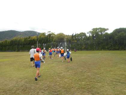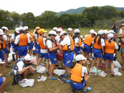かなり曇っていますが、カヤックに少し乗れそう。乗り方を教えてもらい、いざ、琵琶湖へ。
