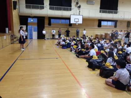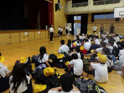 5年生の児童が自然学習から帰ってきました。みんな元気です。