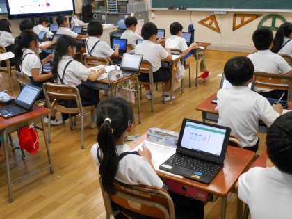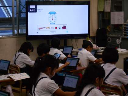 算数科の時間は「重さ」の学習です。タブレットを使って、量りで重さを測ることのできるものを予想していました。