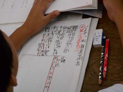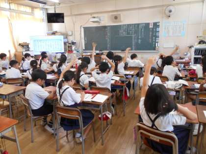 国語科「ごんぎつね」の学習です。ごんは、兵十のお母さんが亡くなったのは、自分のせいではないかと考える場面でした。第2場面を読んで、兵十の今までとは異なる表情や様子から、兵十のお母さんに対する思いを一人一人が捉えていました。