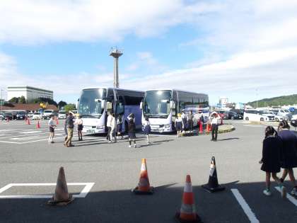 6年生を乗せたバスはスムーズに進み、予定通り一つ目の休憩所「道の駅針テラス」に到着しました。
