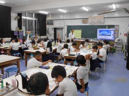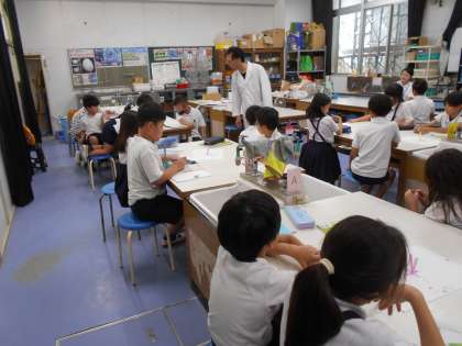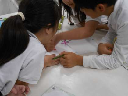 実験したことをもとに、わかったことを発言していました。「太陽とかげは真反対にある」「太陽の位置によってかげの長さが変わっている」などがありました。実験から多くのことを学び、教科書をこえた学びにもなっていました。