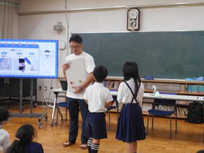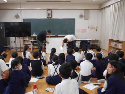 5年生が社会科で生産の学習をするため、、来月にタカラスタンダードへ見学に行きます。タカラスタンダードのゲストティーチャーを迎え、事前学習をしました。ホーローは汚れにくいなど、素材について教えてもらいました。