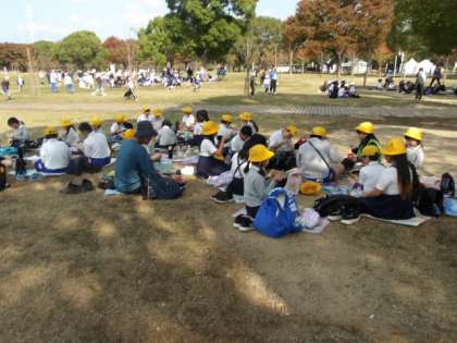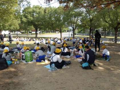 クイズやゲームのポイントも終わり、ゴールへ。みんなでお弁当を食べました。