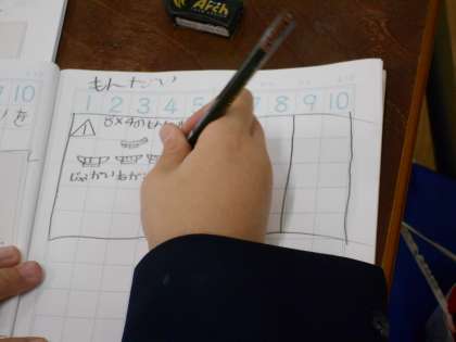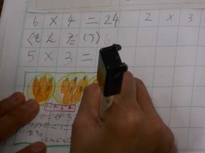 今日の算数の時間は、かけ算になる問題を考えていました。教科書に示されている絵から、一人一人が問題を文章や絵に表したりしてノートに表していました。かけ算の意味を理解していることが大切になります。