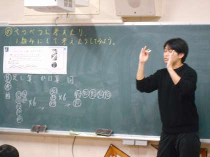 2種類の物を複数個、買う時、全部の代金を求め方について学習しました。1種類ずつ買う時の値段をかけ算を使って解いていく考えが出ました。一方で、同じ個数を買うので、2種類の1個ずつの値段を合わせた金額に、いくつ買うのかをかけ算で求める考えも出ました。その時は、クラスの仲間から、どよめきが上がっていました。