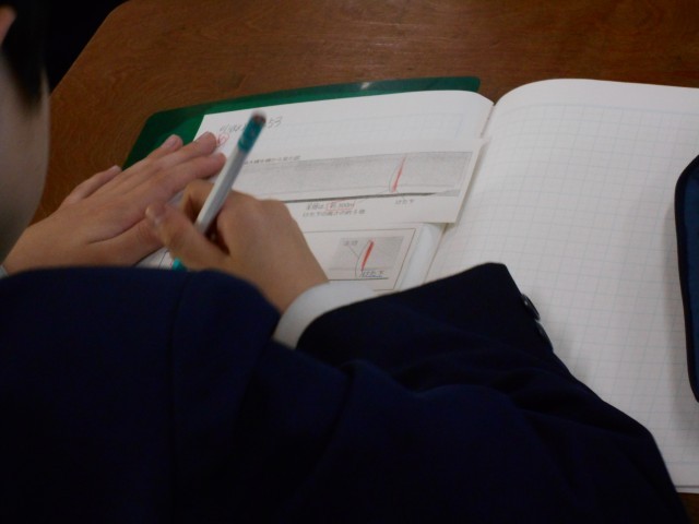 今日の学習は、明石大橋の主塔にかかる「けた下」の長さを求める問題です。文章に記述されている数字と問題の意味を考えていきます。図に表して解いていくことも手掛かりになるやもしれません。一人一人が意欲的な態度で取り組んでいます。