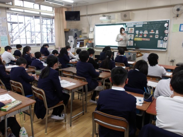 今日は、5年生の栄養指導でした。栄養教諭の方を講師として迎え、体をつくる栄養について学習をしました。