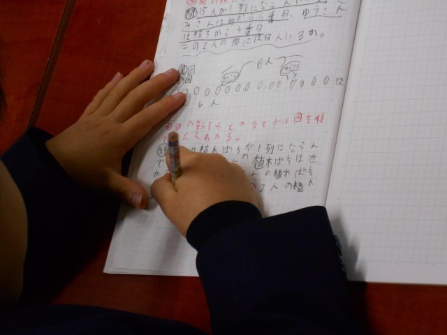 算数科の時間でした。問題文を読んで、わかることを読み取って、図に表していきました。問題文だけでは難しくても図に表すと解きやすくなりました。解けた表情は嬉しそうでした。