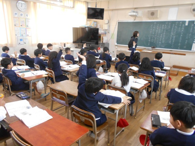 国語の時間です。単元名「あなの やくわり」で、五円玉の穴の役割を教科書から読み取っていました。穴の役割とその詳しい説明