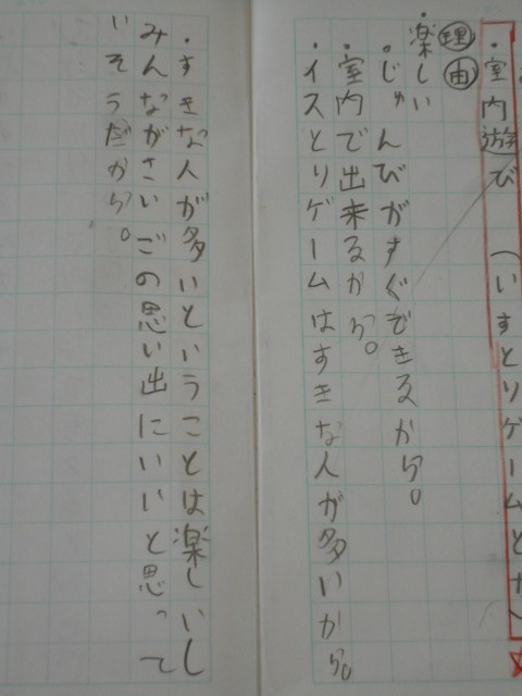 国語の時間です。年度末にあたり、クラスの思い出となることを考えていました。「何をするか」「なぜ、それが思い出となるのか」を一人一人が考えてノートに書いていました。この後、それを出し合って、学級のみんながより楽しめるような工夫をしていきます。