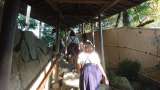 閉舎式 そして、宿舎出発 旅館の方々が赤いハンカチを振ってお見送りをしてくださ...