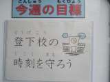 「登下校の時刻を守ろう」です。登校は通年8時25分まで。下校時刻は通常3月からは...
