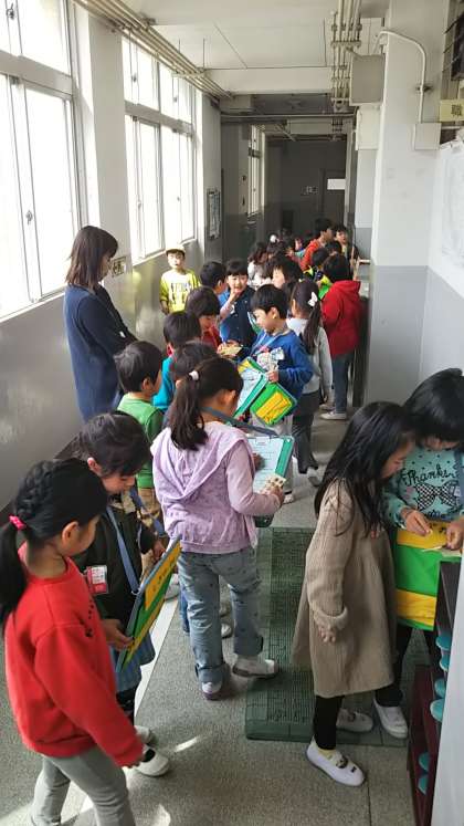 2年生が1年生の手をとり、職員室や校長室等、校内を案内しました。