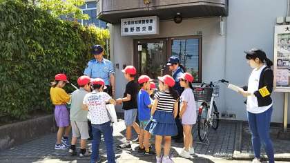 区役所や保護者の方々に見守っていただきながら、グループ毎に校区の様子について学習しました。