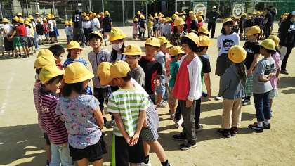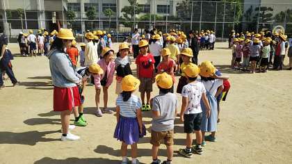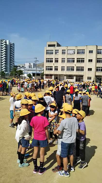 晴天のもと、ファミリーでの初めての児童集会を行いました。今日は、グループのみんなの名前を覚えようゲームでした。