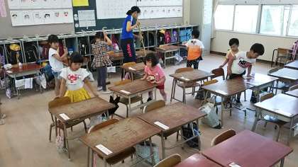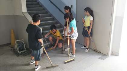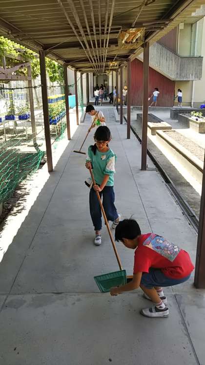 学校をきれいにしようと頑張っています。1年生も自分たちでお掃除できるようになりました。