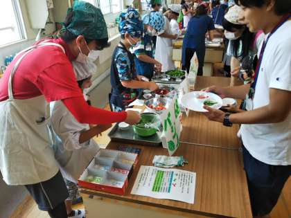子どもたちがお店番をし、教職員はお客さんです。お金の計算をしたり、声をかけあったりして、楽しく活動に取り組みました。