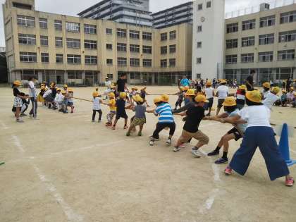 ファミリーで玉入れや綱引き、ゴムとびに取り組みました。大きな歓声があがり、楽しそうでした。