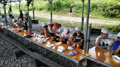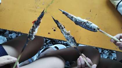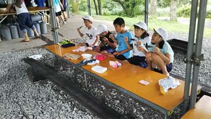 林間学習 魚つかみ