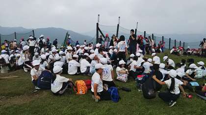 全員無事、山頂まで登りました。途中励まし合って頑張りました。たくさんのトンボが出迎えてくれました。