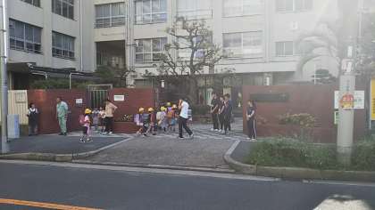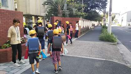 今日も暑くなりそうです。教育実習生も登校指導に加わっています。
