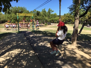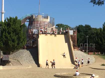 すべり台が大きすぎて、まるでお話の世界のように見えます。