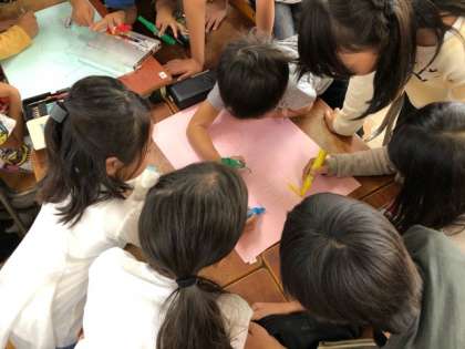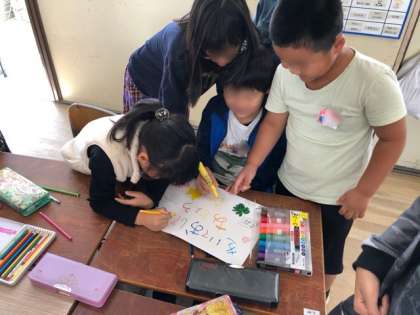 今日は、6年生に教えてもらいながら、役割分担をしたり、看板やポスターを作ったりしました。