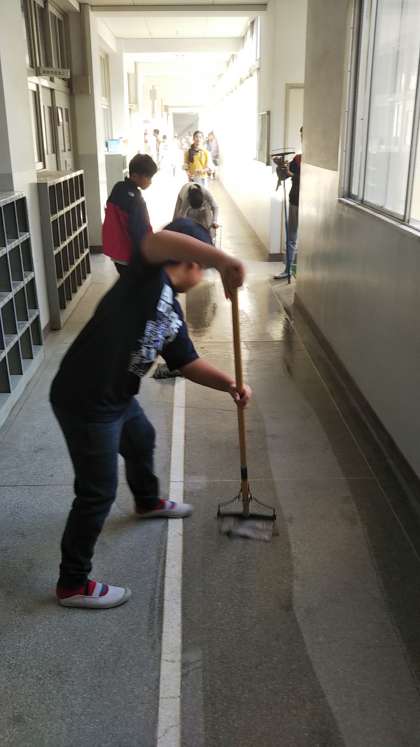 学校を美しくしようと、一生懸命清掃に取り組んでいます。