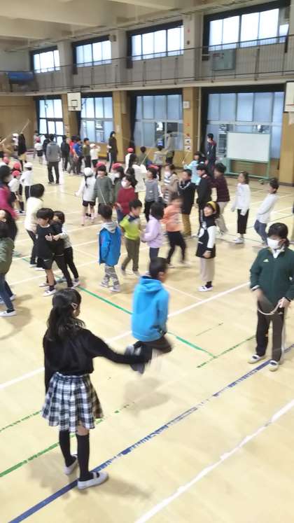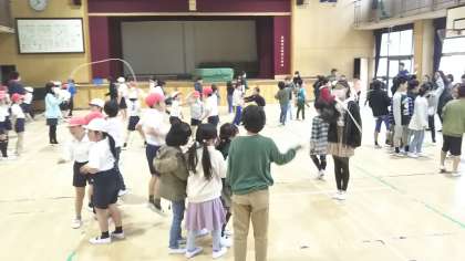 運動委員会が中心となり、大なわとびにチャレンジしています。