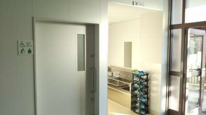 体育館入口及び3階のトイレ改修工事が終わりました。オートマチック化され、自動点灯となりました。きれいに使いましょう。