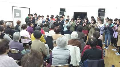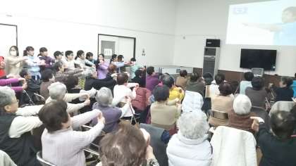 国語科の学習の発展で、鴫野地域で毎週行われているふれあい喫茶に参加しました。100才体操を共に行い、赤いスイートピーのリコーダー演奏、ふるさとを皆さんで歌いました。