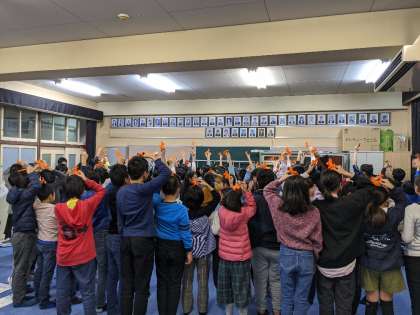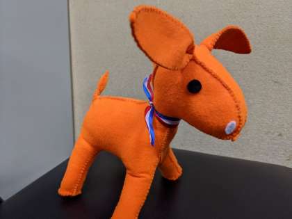 活動のシンボルのロバの人形をいただき、みんなで目と鼻を付けました。