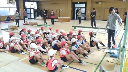 とび箱を使った運動遊びにチャレンジしました。互いに声をかけあい、助け合って学習に取り組みました。