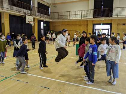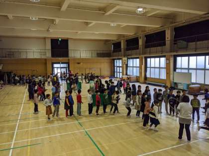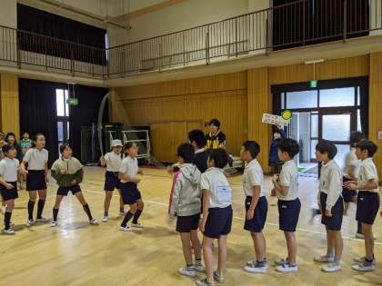 学級の友だちでチームを組み、みんなで声を合わせて挑戦しました。