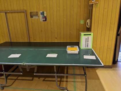 講堂出口付近にアンケート用紙と投函BOXを置いております。