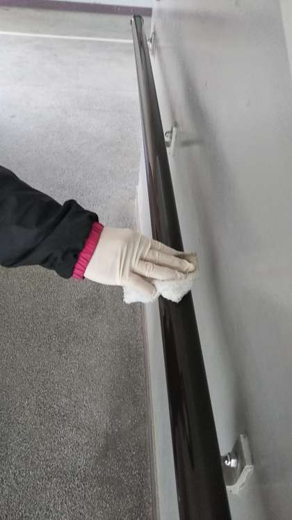 子ども達が下校した後、教職員で教室の机やドアノブ、スリッパ等の消毒を行いました。