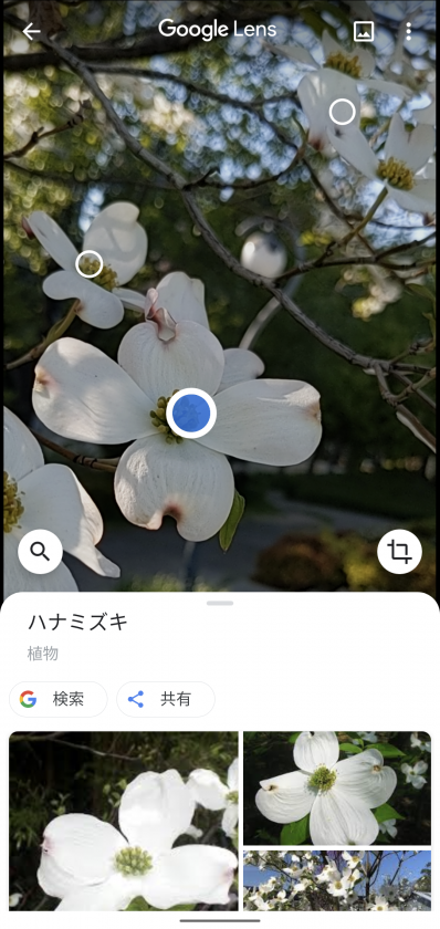 Androidスマホなら、カメラをかざして撮影するだけで、類似する植物が検索されます。
