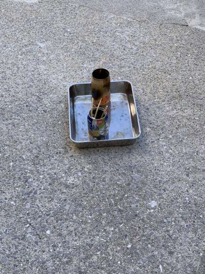 写真ではわかりにくいですが、2つの缶で燃え方が違います。
