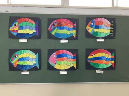 右は2年生の作品です。同じ色でも濃いものから薄いものに変わっていくのが、とてもきれいです。