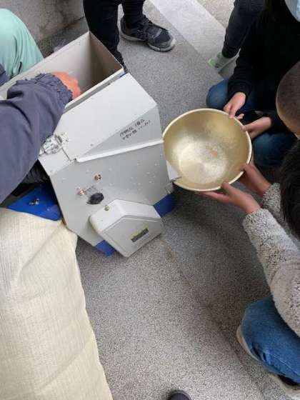 今日は、田植えから稲刈りを経て、いよいよ脱穀や精米を行いました。