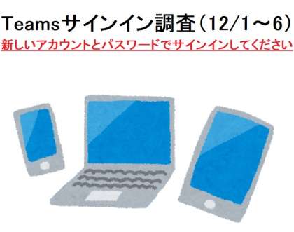 12/1(火)〜6(日)の間に、新しいアカウント・パスワードでサインインしてください。