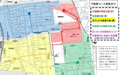 つきましては、来週以降、校区外から通学する予定の新1年生の保護者の方へ、鴫野校区内の送り迎え地点を確認させていただきます。