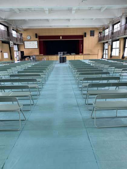 5年生が卒業式の会場となる講堂に椅子を並べてくれました。