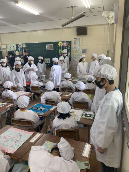 慣れるまでは、6年生のお兄さん・お姉さんが準備に来てくれます。
