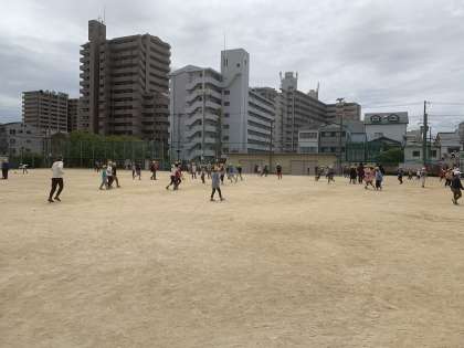 鴫野小学校の子どもたちは今日も元気いっぱい運動場を走り回っています。